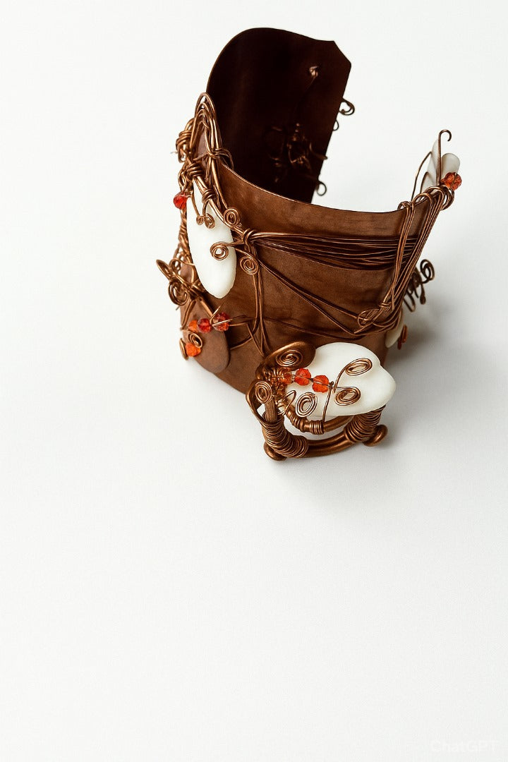 Lunar Elegance: Copper Cuff Bracelet & Ring with Mother of Pearl & Swarovski